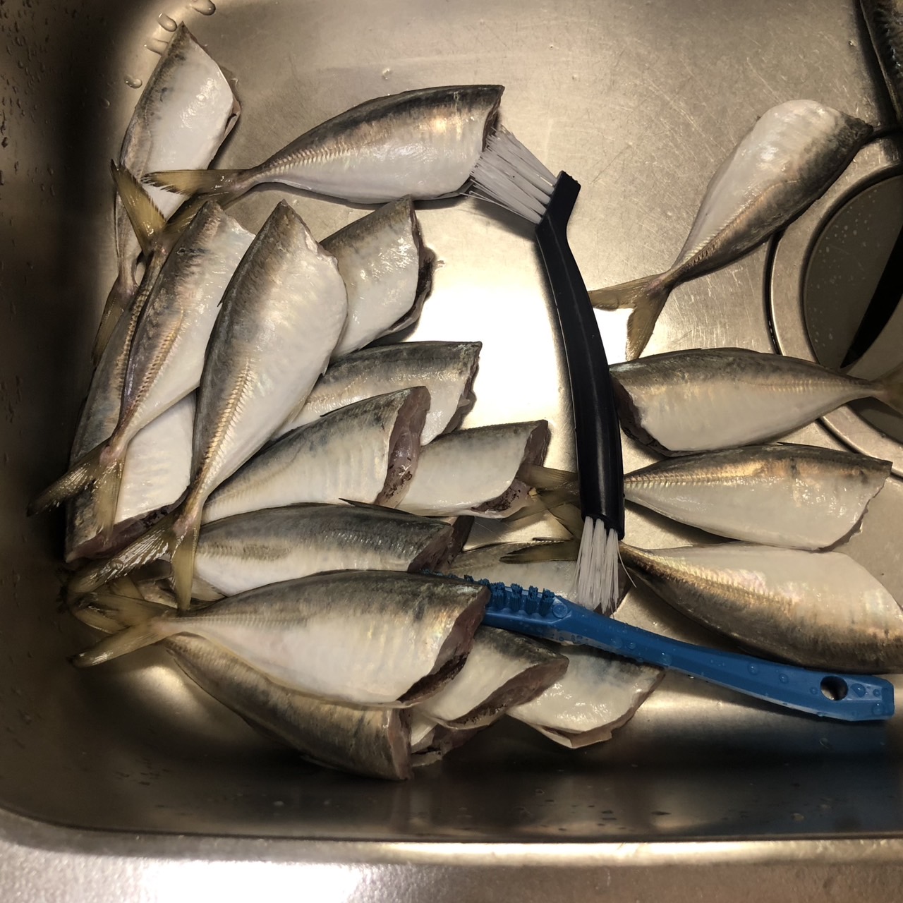 デカいアジなら丁寧に三枚おろしにして刺身にしたいところですが、15cm以下のアジを沢山釣った時って捌くのが面倒くさいですよねw